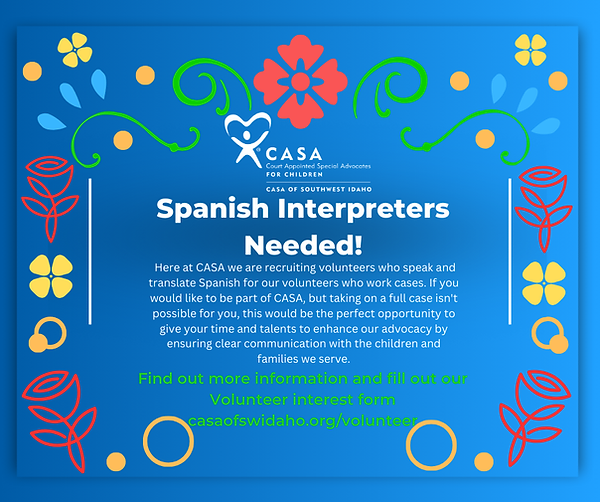 The judge assigns us to a case, and we assign a volunteer Court Appointed Special Advocate (CASA). In Idaho, each foster child under age 12 is required to have a CASA, though we also serve teenagers in care when assigned.